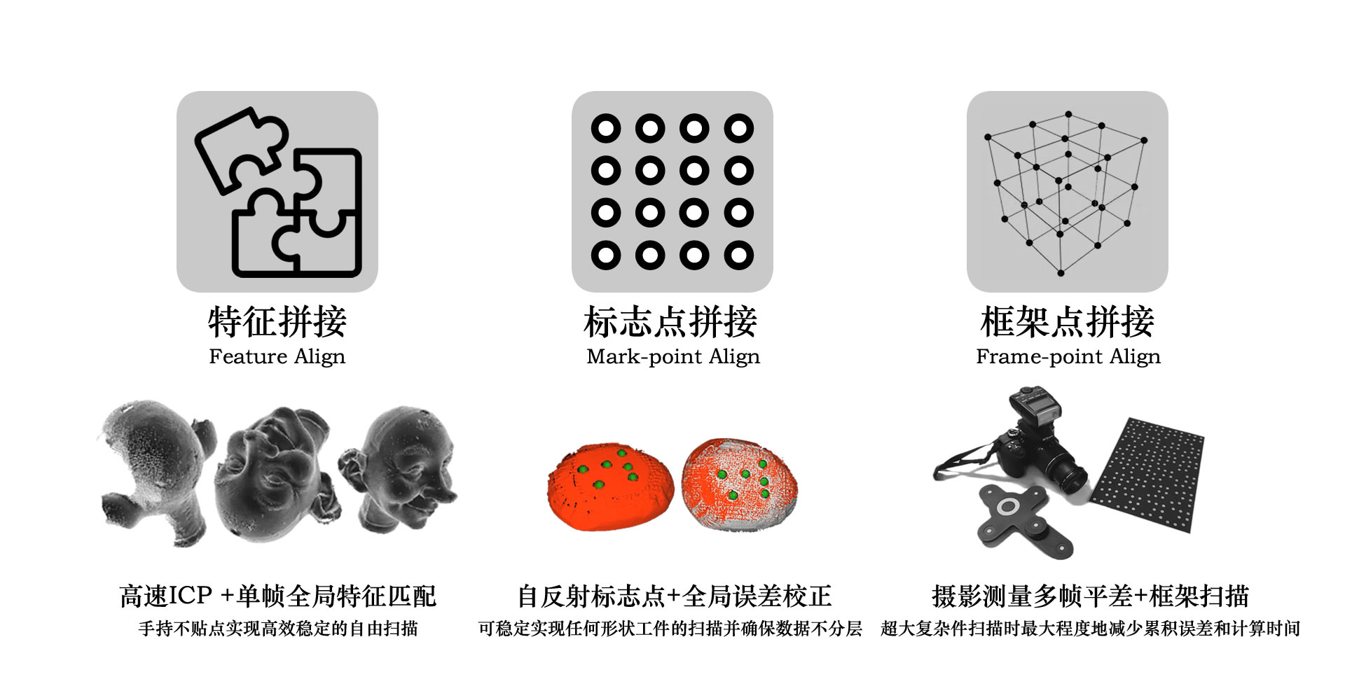 HSCAN-S是基于實時三維重建應用場景設計的高集成度易操作的手持式三維掃描系統,可實現0.03秒高速掃描并一鍵自動完成點云全局注冊,去噪融合,無損網格化,補洞,曲率抽樣生成STL標準三維格式。系統基